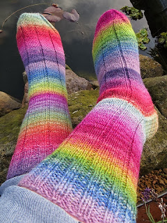 Und dann hatte ich aus einer weiteren Überraschungsfärbung auch noch reichlich übrig und es gleich mit "verbraten". Trotz größter Mühen habe ich die unterschiedlichen Farbvarianten nicht aufs Bild bannen können. Unten auf dem ersten Bild sind es zum Beispiel zwei Türkis- und zwei Rotbrauntöne. Aber vielleicht stimmen die Farben ja irgendwann einmal beim Fotografieren des fertigen Garns.